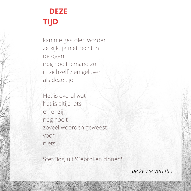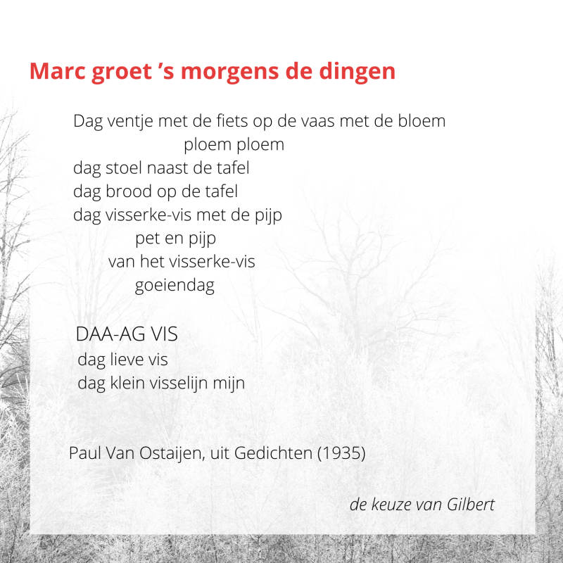 De literaire ontbijtbox die we aan huis brachten bij vele leden (102 inschrijvingen!), bevatte niet alleen veel lekkere dingen die de ochtendhonger stilden maar ook een gedichtenbundel. Alle teamleden kozen hun favoriet gedicht.